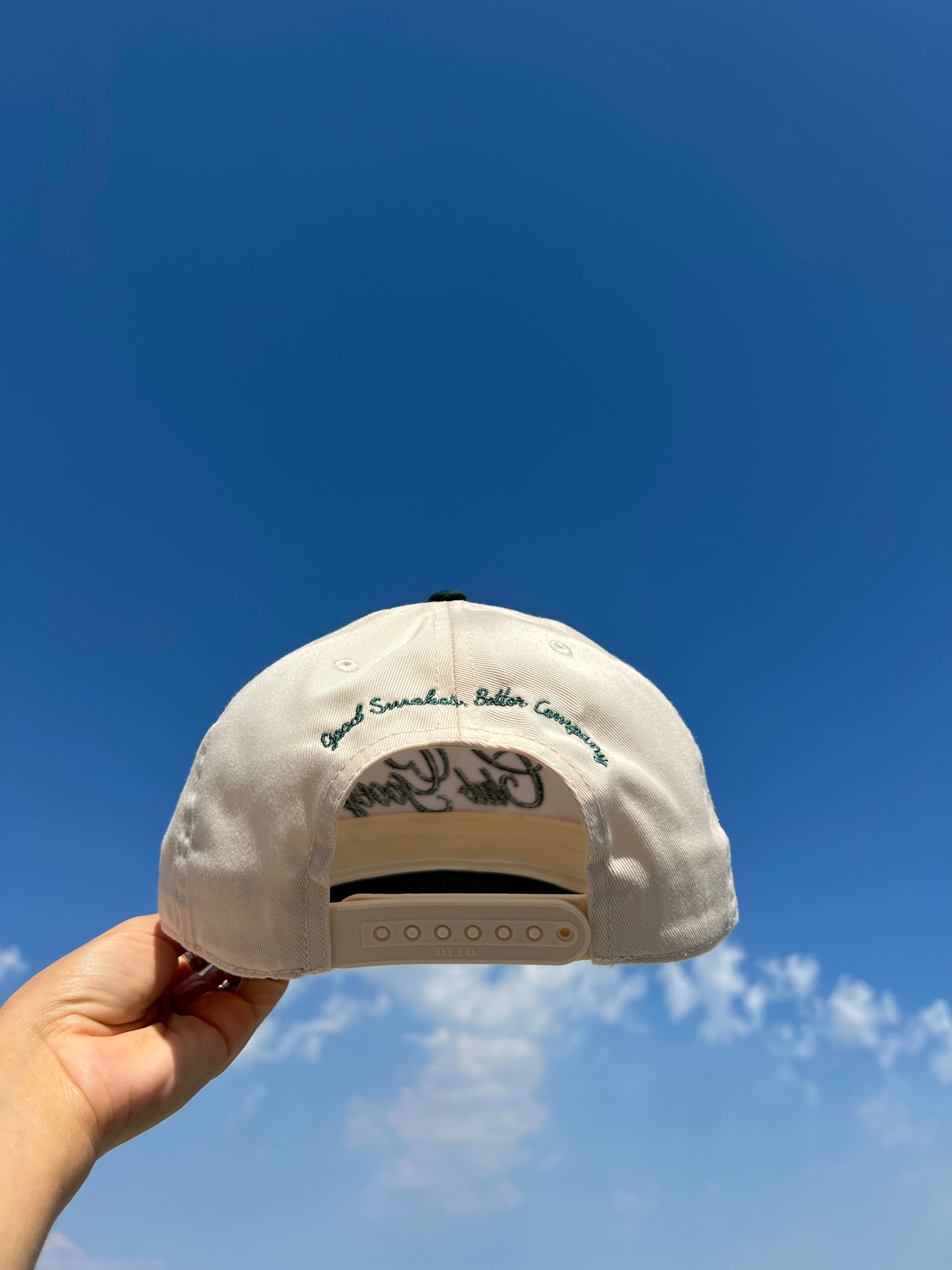 Our Club Gooey cap features custom embroidery of our Goddess of Love wrapped in lettuce leafs crest. "Good Smokes, Better Company" detailed along the back adding an exclusive insider's touch for those in the know.