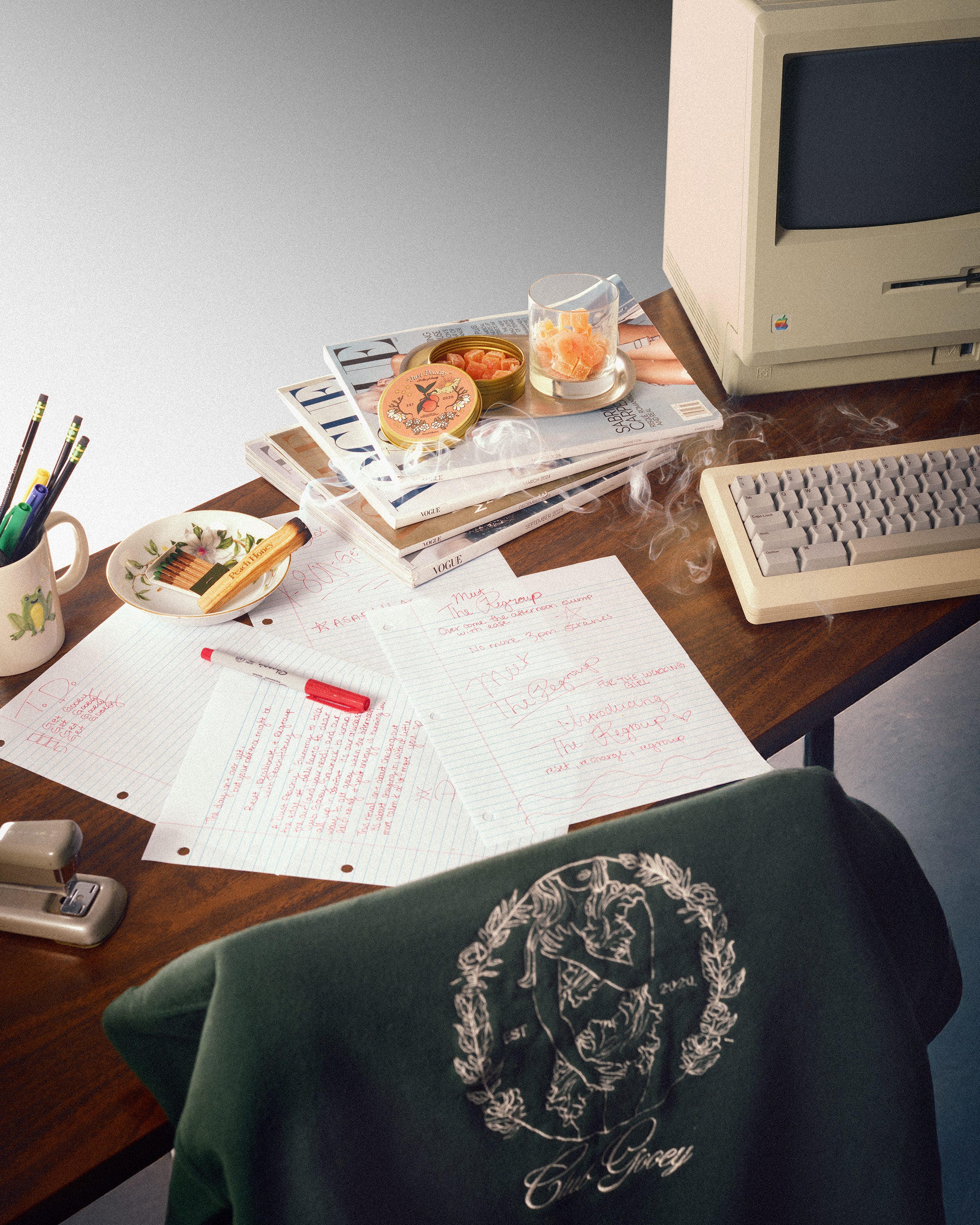 A Just Peachy gummy to take the edge off, palo santo to clear the air (and your head), and a Club Gooey crewneck to wrap it all up in comfort. It’s our quickest way to get gooey when the afternoon feels noisy and your energy is running thin.